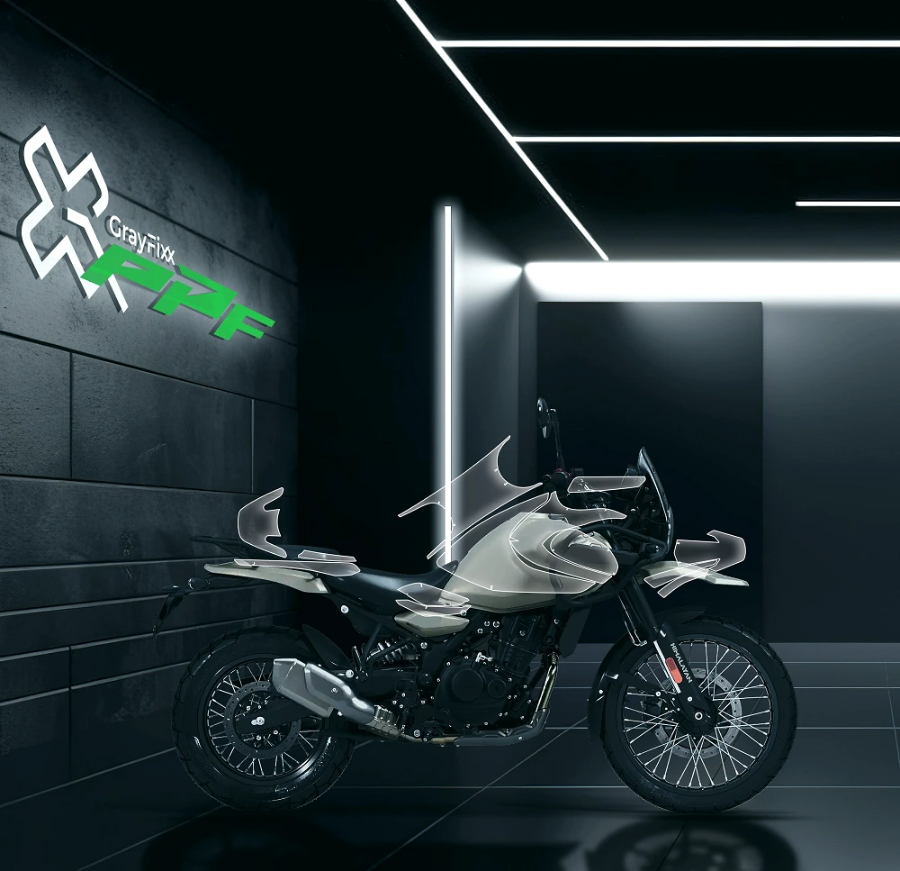 Pre-Cut Paint Protection Film for Himayalan 450, exclusively presented by Grayfixx, is designed to deliver a premium glossy finish while protecting your motorcycle’s paint from daily wear and damage. Made from high-quality TPU (Thermoplastic Polyurethane) material, this PPF features a 7.5 Mil (˜190 Micron) durable thickness with an advanced 3-layer construction for long-lasting performance. This pre-cut PPF kit ensures a precise fit, easy installation, and professional-grade coverage. It is waterproof, non-yellowing, low maintenance, and engineered to resist scratches, stone chips, and environmental damage. The film also includes self heat-healing technology, allowing minor scratches to disappear with heat exposure. Packaged in original Grayfixx brand packaging, this product is ideal for riders looking for long-term paint protection, enhanced gloss, and premium durability.