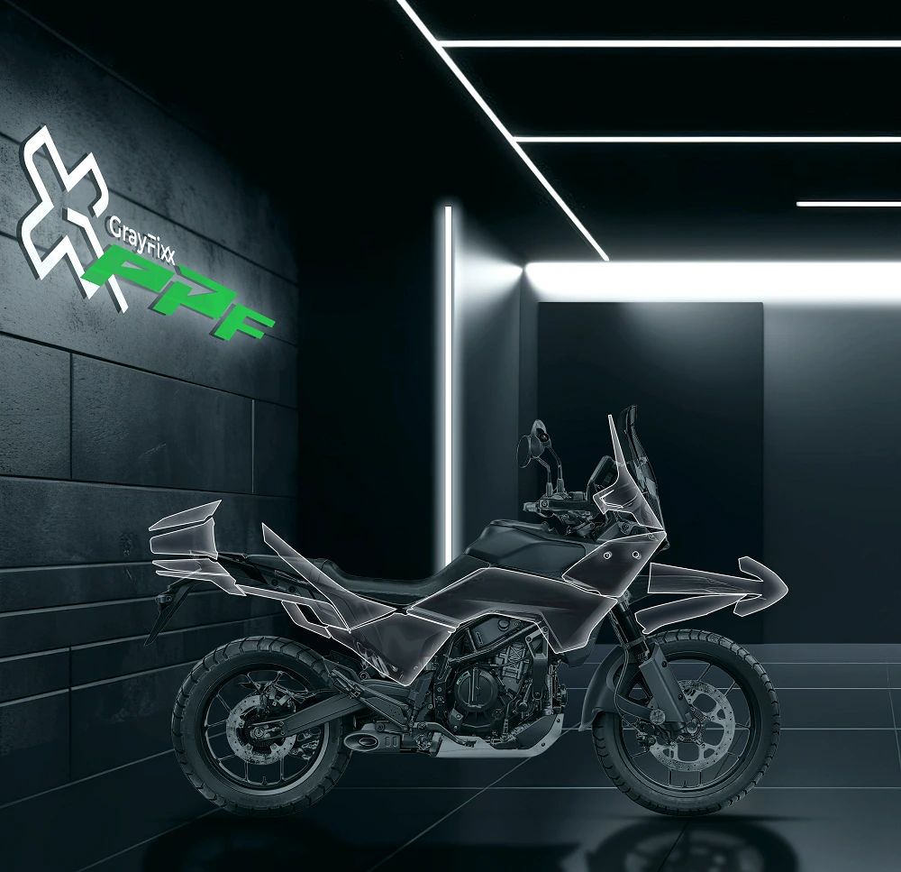 Pre-Cut Paint Protection Film for Adventure 390 X, exclusively presented by Grayfixx, is designed to deliver a premium glossy finish while protecting your motorcycle’s paint from daily wear and damage. Made from high-quality TPU (Thermoplastic Polyurethane) material, this PPF features a 7.5 Mil (˜190 Micron) durable thickness with an advanced 3-layer construction for long-lasting performance. This pre-cut PPF kit ensures a precise fit, easy installation, and professional-grade coverage. It is waterproof, non-yellowing, low maintenance, and engineered to resist scratches, stone chips, and environmental damage. The film also includes self heat-healing technology, allowing minor scratches to disappear with heat exposure. Packaged in original Grayfixx brand packaging, this product is ideal for riders looking for long-term paint protection, enhanced gloss, and premium durability.