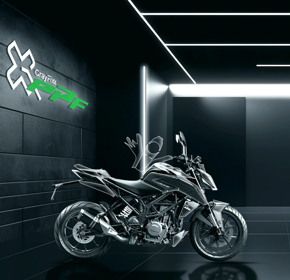 Pre-Cut Paint Protection Film for Duke 125/200/250/390, exclusively presented by Grayfixx, is designed to deliver a premium glossy finish while protecting your motorcycle’s paint from daily wear and damage. Made from high-quality TPU (Thermoplastic Polyurethane) material, this PPF features a 7.5 Mil (˜190 Micron) durable thickness with an advanced 3-layer construction for long-lasting performance. This pre-cut PPF kit ensures a precise fit, easy installation, and professional-grade coverage. It is waterproof, non-yellowing, low maintenance, and engineered to resist scratches, stone chips, and environmental damage. The film also includes self heat-healing technology, allowing minor scratches to disappear with heat exposure. Packaged in original Grayfixx brand packaging, this product is ideal for riders looking for long-term paint protection, enhanced gloss, and premium durability.