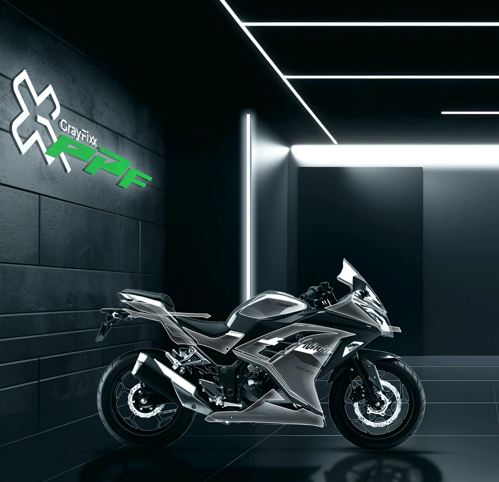 Pre-Cut Paint Protection Film for Ninja 300, exclusively presented by Grayfixx, is designed to deliver a premium glossy finish while protecting your motorcycle’s paint from daily wear and damage. Made from high-quality TPU (Thermoplastic Polyurethane) material, this PPF features a 7.5 Mil (˜190 Micron) durable thickness with an advanced 3-layer construction for long-lasting performance. This pre-cut PPF kit ensures a precise fit, easy installation, and professional-grade coverage. It is waterproof, non-yellowing, low maintenance, and engineered to resist scratches, stone chips, and environmental damage. The film also includes self heat-healing technology, allowing minor scratches to disappear with heat exposure. Packaged in original Grayfixx brand packaging, this product is ideal for riders looking for long-term paint protection, enhanced gloss, and premium durability.
