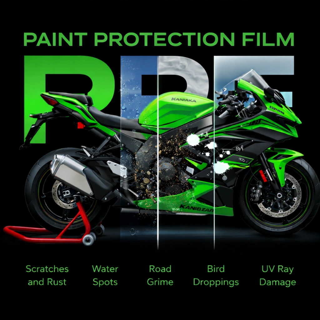 Pre-Cut Paint Protection Film for Apache RTR 2V, exclusively presented by Grayfixx, is designed to deliver a premium glossy finish while protecting your motorcycle’s paint from daily wear and damage. Made from high-quality TPU (Thermoplastic Polyurethane) material, this PPF features a 7.5 Mil (˜190 Micron) durable thickness with an advanced 3-layer construction for long-lasting performance. This pre-cut PPF kit ensures a precise fit, easy installation, and professional-grade coverage. It is waterproof, non-yellowing, low maintenance, and engineered to resist scratches, stone chips, and environmental damage. The film also includes self heat-healing technology, allowing minor scratches to disappear with heat exposure. Packaged in original Grayfixx brand packaging, this product is ideal for riders looking for long-term paint protection, enhanced gloss, and premium durability.